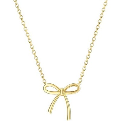 Risamil 14K Gold Plated Necklace for Women - Bow Necklace - Dainty Necklace Cute Small Tiny Bow Pendant Choker Chain Necklace Trendy Necklaces for Women Jewelry Gift